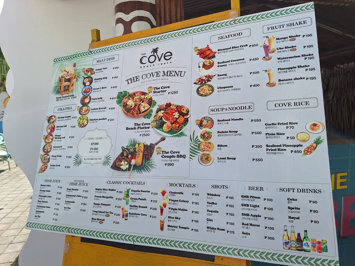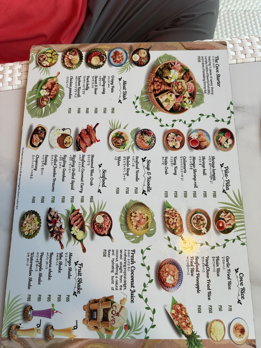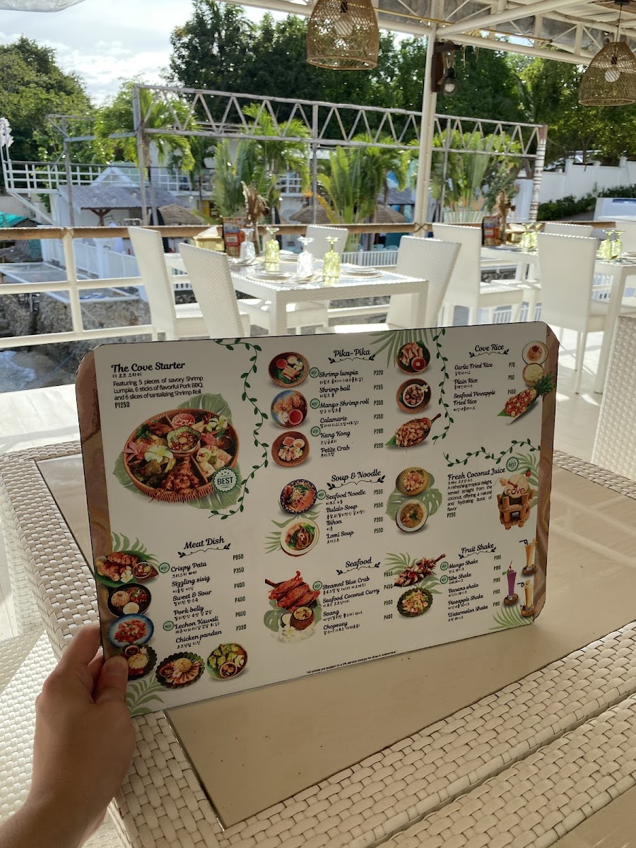 The Cove Beach Resto invites you to unwind and savor quality seafood with a touch of elegance in a tranquil setting.